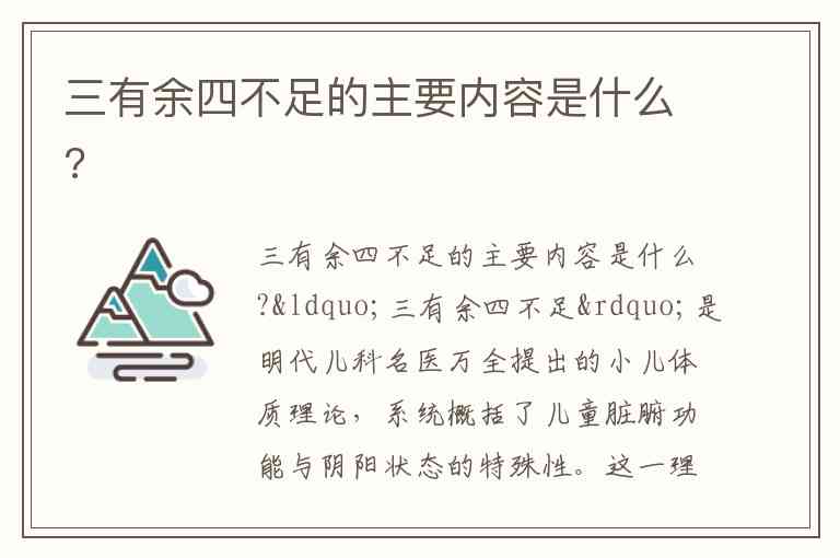 “三有余四不足”是明代儿科名医万全提出的小儿体质理论,系统概括了儿童脏腑功能与阴阳状态的特殊性。这一理论以“肝常有余、心常有余、阳常有余”概括生理上的相对亢奋状态,以“脾常不足、肺常不足、肾常虚”揭示稚弱特点,核心在于阐释儿童“生机蓬勃却脏腑娇嫩”的矛盾统一体。