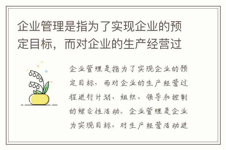 企业管理是指为了实现企业的预定目标,而对企业的生产经营过程进行计划、组织、领导和控制的综合性活动。