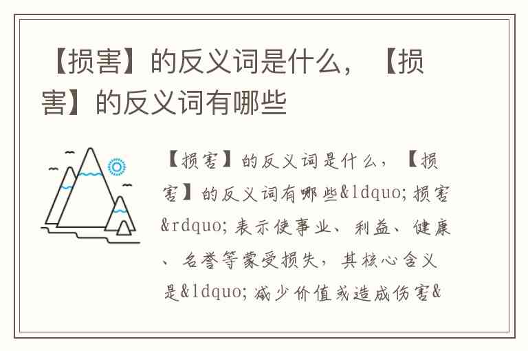 “损害”表示使事业、利益、健康、名誉等蒙受损失,其核心含义是“减少价值或造成伤害”。它的反义词主要围绕“增加价值”“促进发展”“修复完善”三大方向展开。