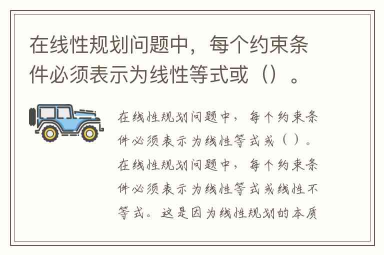 在线性规划问题中,每个约束条件必须表示为线性等式或()。
