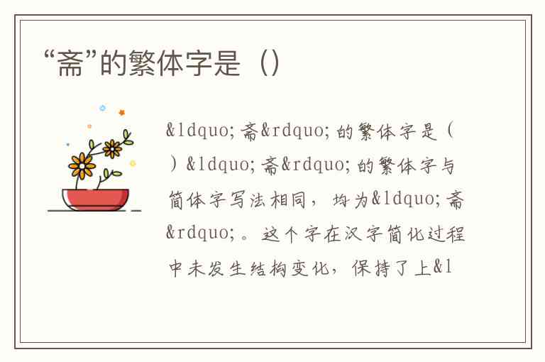 在中文语境中,部分汉字存在繁简同形的情况,“斋”便是其中之一。这种现象体现了汉字简化时对文化传承的考量——当字形结构已较为简洁且不影响辨识时,会保留原字形。你还知道哪些繁简同形的汉字呢?