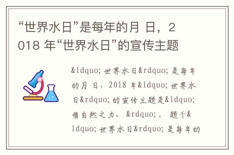 “世界水日”是每年的月 日,2018 年“世界水日”的宣传主题是“借自然之力, ”。 题干