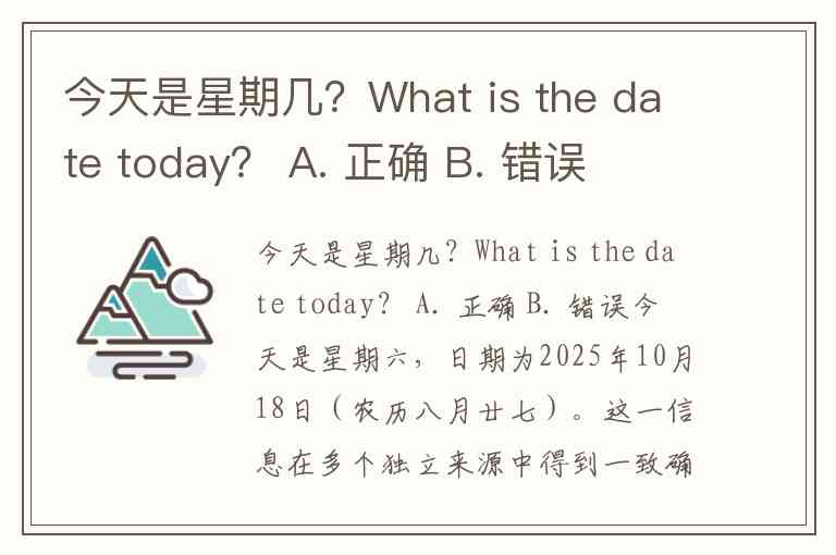 今天是星期六,日期为2025年10月18日(农历八月廿七)。这一信息在多个独立来源中得到一致确认,包括公历日期与星期的对应关系。
