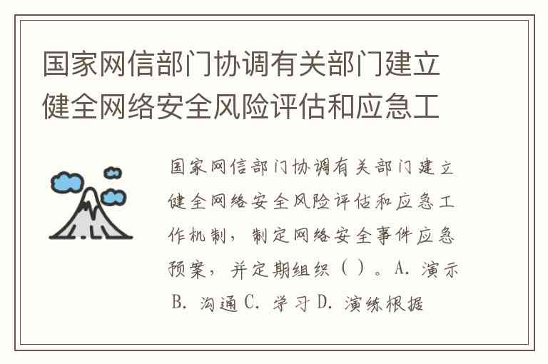 国家网信部门协调有关部门建立健全网络安全风险评估和应急工作机制,制定网络安全事件应急预案,并定期组织()。A. 演示 B. 沟通 C. 学习 D. 演练