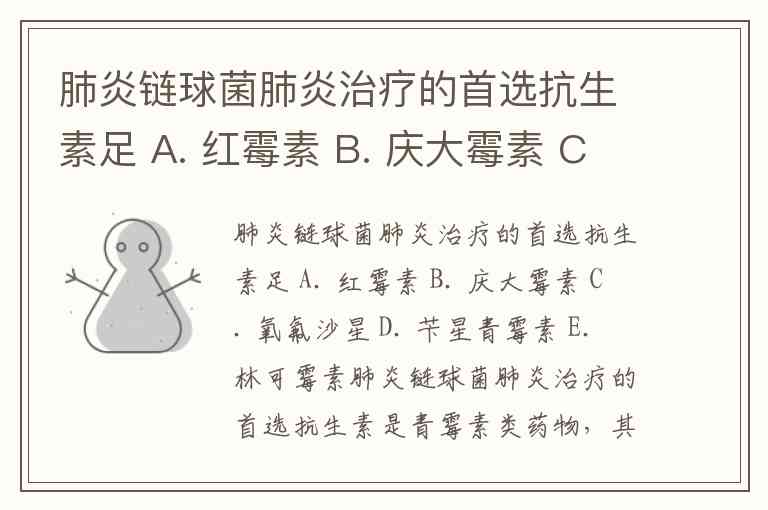 庆大霉素(B):为氨基糖苷类抗生素,主要针对革兰阴性菌,对肺炎链球菌等革兰阳性菌作用有限,并非治疗选择。