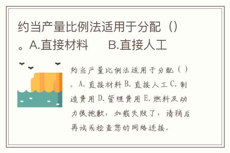 约当产量比例法适用于分配()。A.直接材料 B.直接人工 C.制造费用 D.管理费用 E.燃料及动力