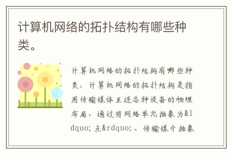 计算机网络的拓扑结构有哪些种类。