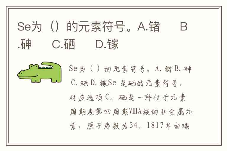 Se为()的元素符号。A.锗 B.砷 C.硒 D.镓