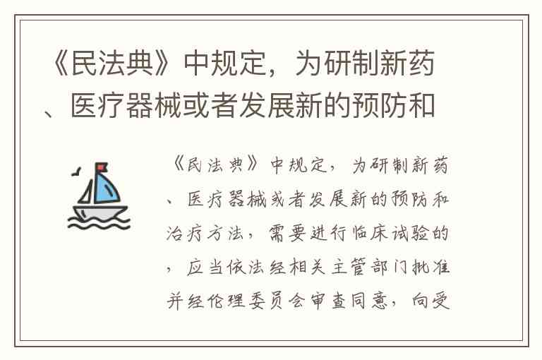 《民法典》第1008条明确规定,临床试验需向受试者或其监护人告知试验目的、用途和可能产生的风险这三类核心信息,并获得书面同意。这一规定构建了临床试验知情同意的法定框架,确保受试者在充分了解关键信息的基础上自主决策。