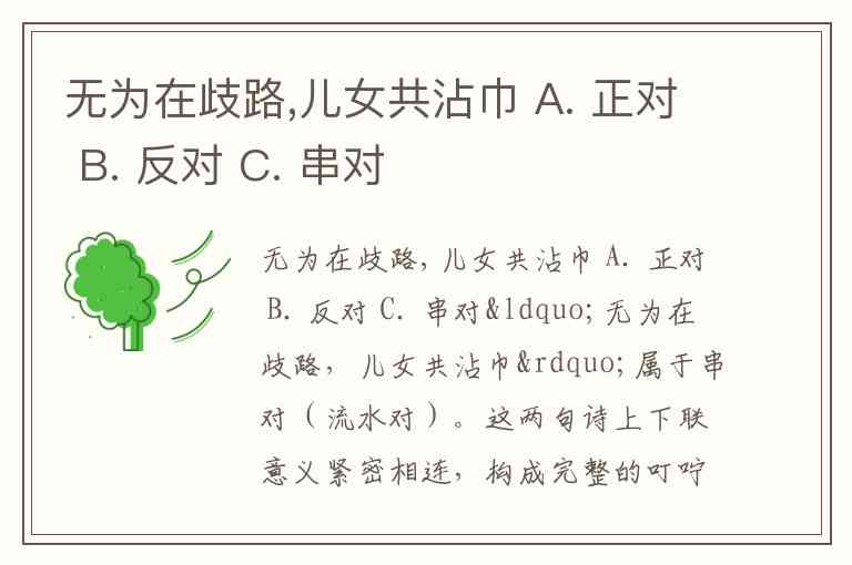 无为在歧路,儿女共沾巾 A. 正对 B. 反对 C. 串对