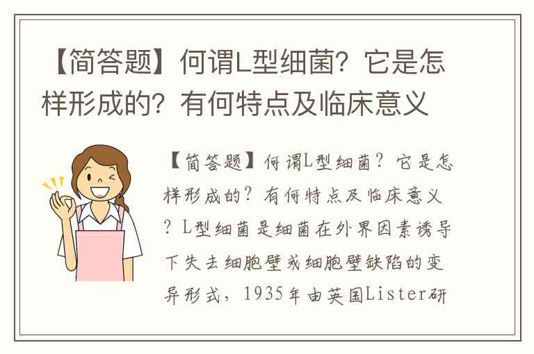【简答题】何谓L型细菌?它是怎样形成的?有何特点及临床意义?