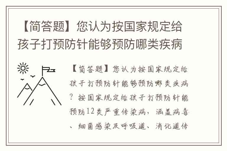 【简答题】您认为按国家规定给孩子打预防针能够预防哪类疾病?