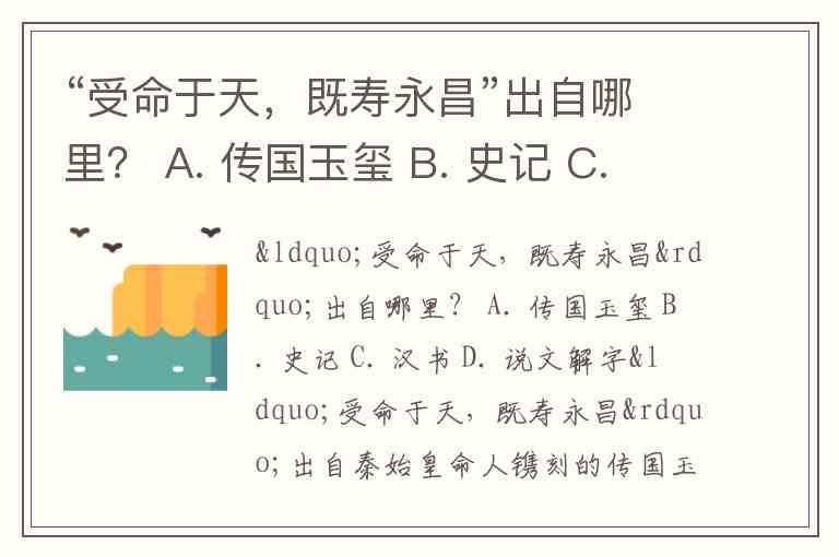 “受命于天,既寿永昌”出自哪里? A. 传国玉玺 B. 史记 C. 汉书 D. 说文解字