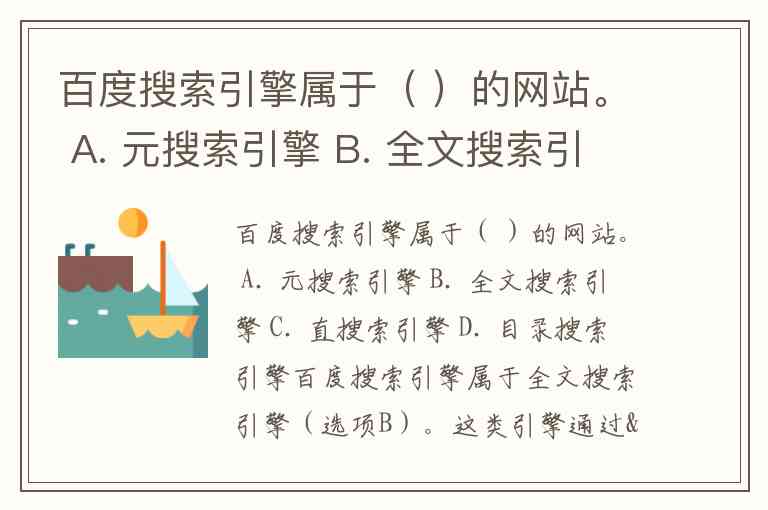 百度搜索引擎属于( )的网站。 A. 元搜索引擎 B. 全文搜索引擎 C. 直搜索引擎 D. 目录搜索引擎