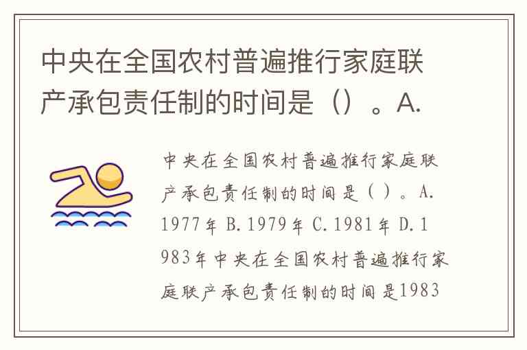 中央在全国农村普遍推行家庭联产承包责任制的时间是()。A.1977年 B.1979年 C.1981年 D.1983年