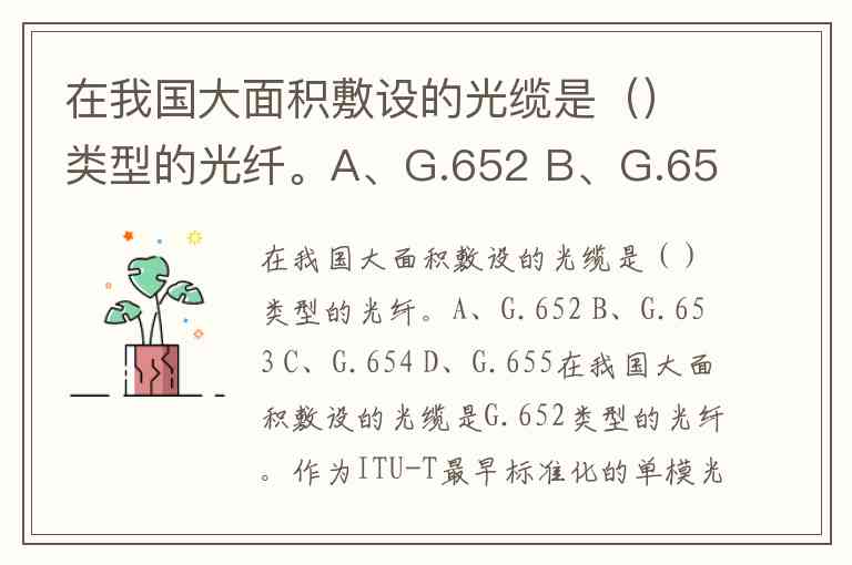 在我国大面积敷设的光缆是()类型的光纤。A、G.652 B、G.653 C、G.654 D、G.655