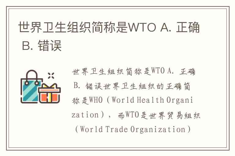 世界卫生组织简称是WTO A. 正确 B. 错误