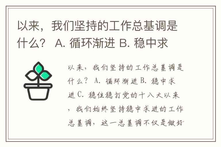 以来,我们坚持的工作总基调是什么? A. 循环渐进 B. 稳中求进 C. 稳住稳打