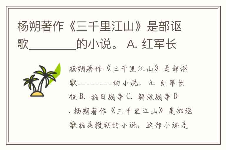 杨朔著作《三千里江山》是部讴歌________的小说。 A. 红军长征 B. 抗日战争 C. 解放战争 D.