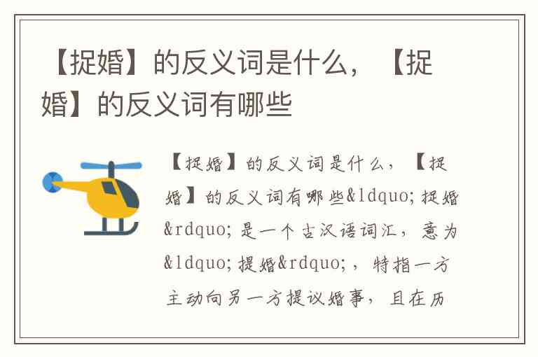 【捉婚】的反义词是什么,【捉婚】的反义词有哪些