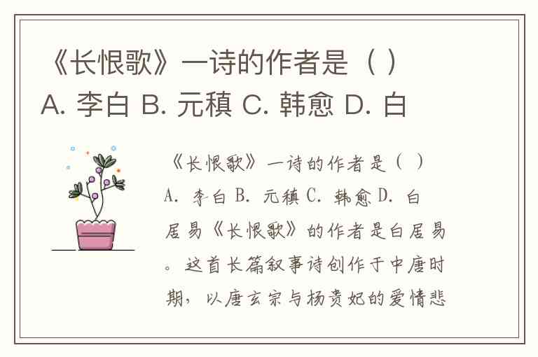 《长恨歌》一诗的作者是( ) A. 李白 B. 元稹 C. 韩愈 D. 白居易