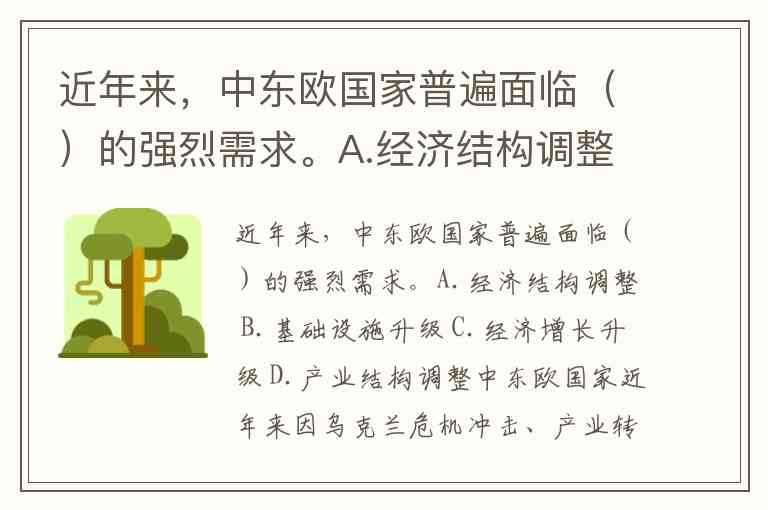 近年来,中东欧国家普遍面临()的强烈需求。A.经济结构调整 B.基础设施升级 C.经济增长升级 D.产业结构调整