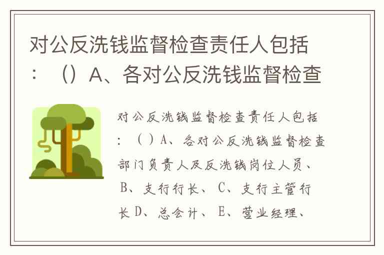 对公反洗钱监督检查责任人包括:()A、各对公反洗钱监督检查部门负责人及反洗钱岗位人员、 B、支行行长、 C、支行主管行长 D、总会计、 E、营业经理、 F、运行督导员、监督员