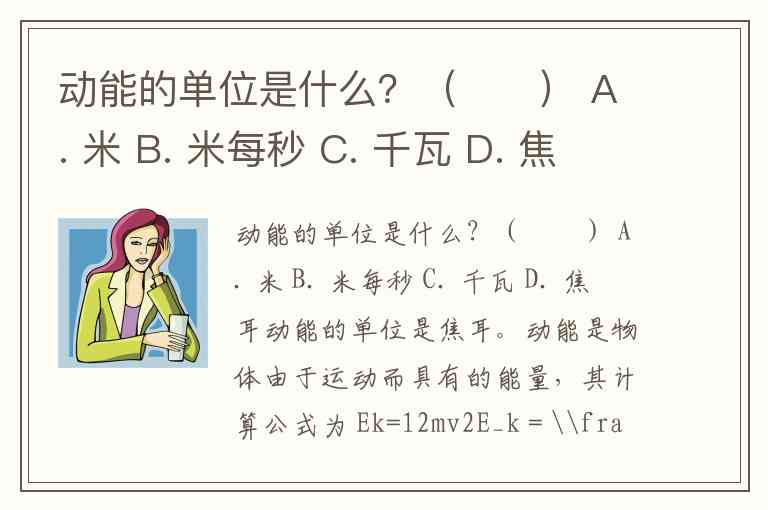 动能的单位是什么?( ) A. 米 B. 米每秒 C. 千瓦 D. 焦耳