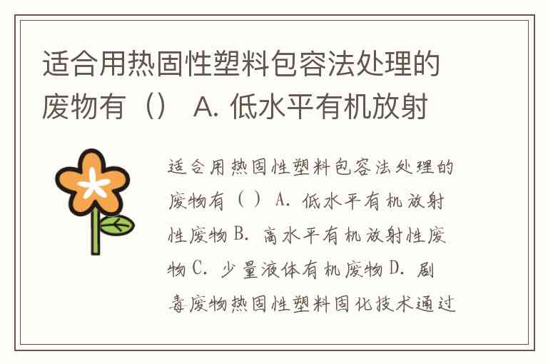 适合用热固性塑料包容法处理的废物有() A. 低水平有机放射性废物 B. 高水平有机放射性废物 C. 少量液体有机废物 D. 剧毒废物