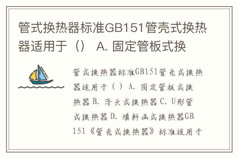 管式换热器标准GB151管壳式换热器适用于() A. 固定管板式换热器 B. 浮头式换热器 C. U形管式换热器 D. 填料函式换热器