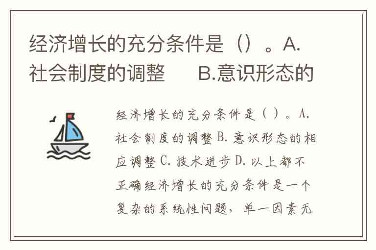 经济增长的充分条件是()。A.社会制度的调整 B.意识形态的相应调整 C.技术进步 D.以上都不正确