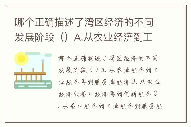 哪个正确描述了湾区经济的不同发展阶段()A.从农业经济到工业经济再到服务业经济 B.从农业经济到港口经济再到创新经济 C.从港口经济到工业经济到服务经济再到创新经济 D.从港口经济到工业经济再到服务经济
