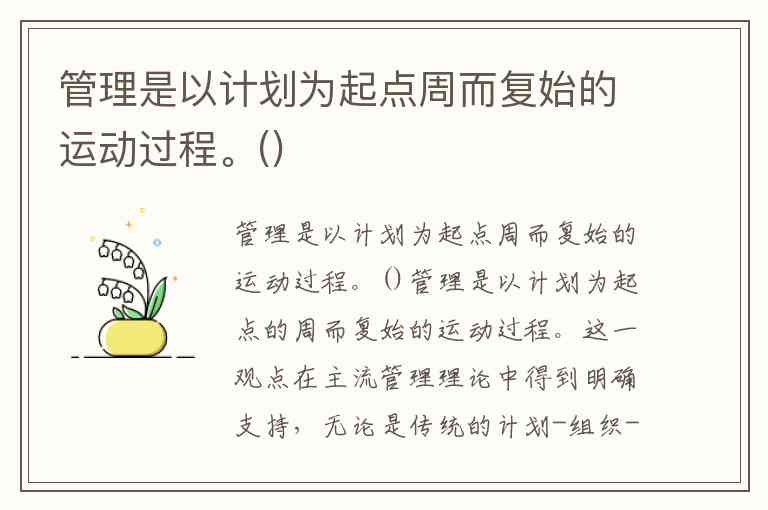 管理是以计划为起点的周而复始的运动过程。这一观点在主流管理理论中得到明确支持,无论是传统的计划-组织-领导-控制四职能框架,还是PDCA循环(计划-执行-检查-处理)模型,均将计划列为管理活动的首要环节。