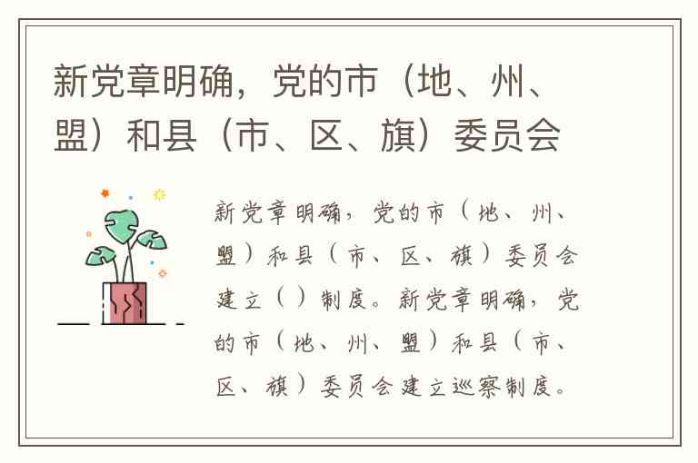 新党章明确,党的市(地、州、盟)和县(市、区、旗)委员会建立()制度。