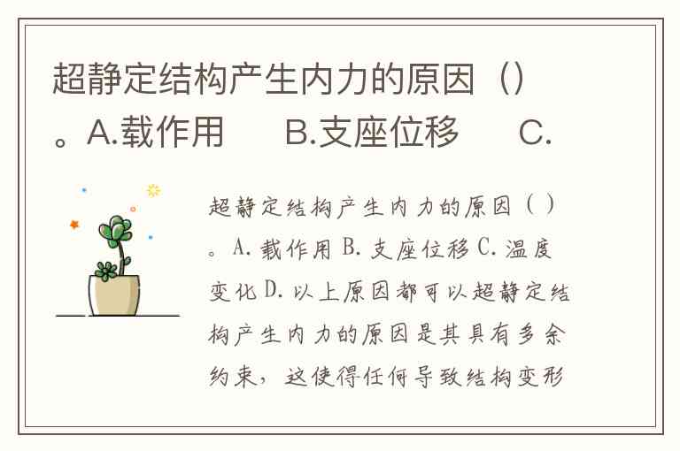 超静定结构产生内力的原因()。A.载作用 B.支座位移 C.温度变化 D.以上原因都可以