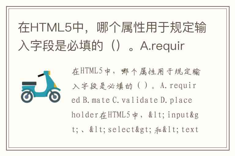 在HTML5中,哪个属性用于规定输入字段是必填的()。A.required B.mate C.validate D.placeholder