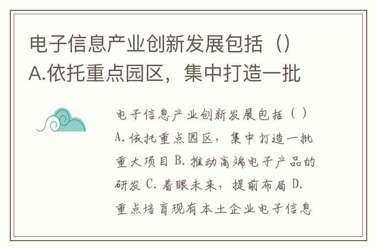 电子信息产业创新发展包括()A.依托重点园区,集中打造一批重大项目 B.推动高端电子产品的研发 C.着眼未来,提前布局 D.重点培育现有本土企业