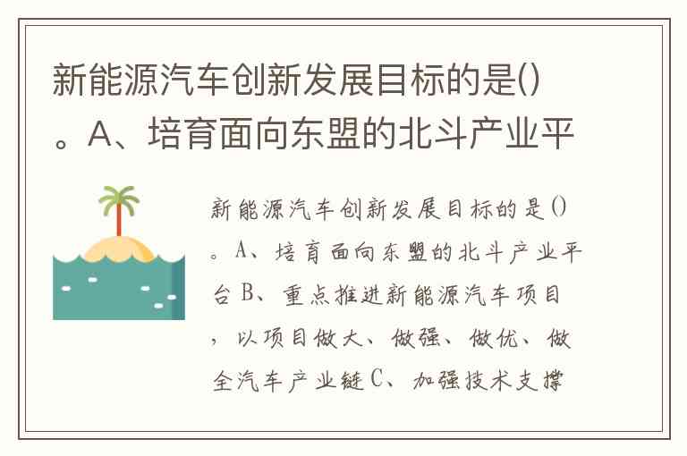 **A选项“培育面向东盟的北斗产业平台”**与新能源汽车创新发展目标无直接关联。北斗系统主要服务于导航与位置服务,而新能源汽车的核心目标聚焦于产业链、技术和生态融合,未提及区域化的卫星导航应用布局。