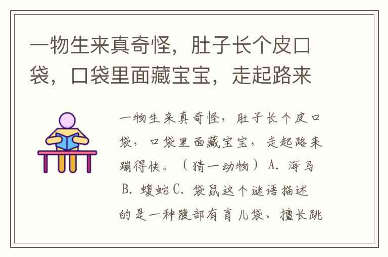 一物生来真奇怪,肚子长个皮口袋,口袋里面藏宝宝,走起路来蹦得快。(猜一动物) A. 海马 B. 蝮蛇 C. 袋鼠