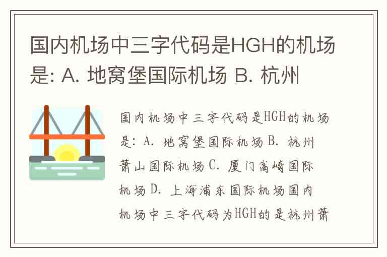 国内机场中三字代码是HGH的机场是: A. 地窝堡国际机场 B. 杭州萧山国际机场 C. 厦门高崎国际机场 D. 上海浦东国际机场