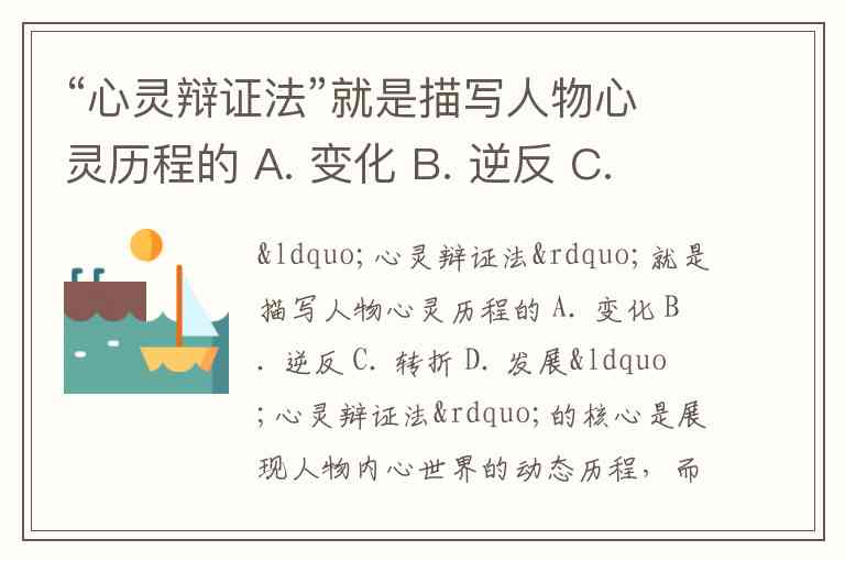 “心灵辩证法”就是描写人物心灵历程的 A. 变化 B. 逆反 C. 转折 D. 发展