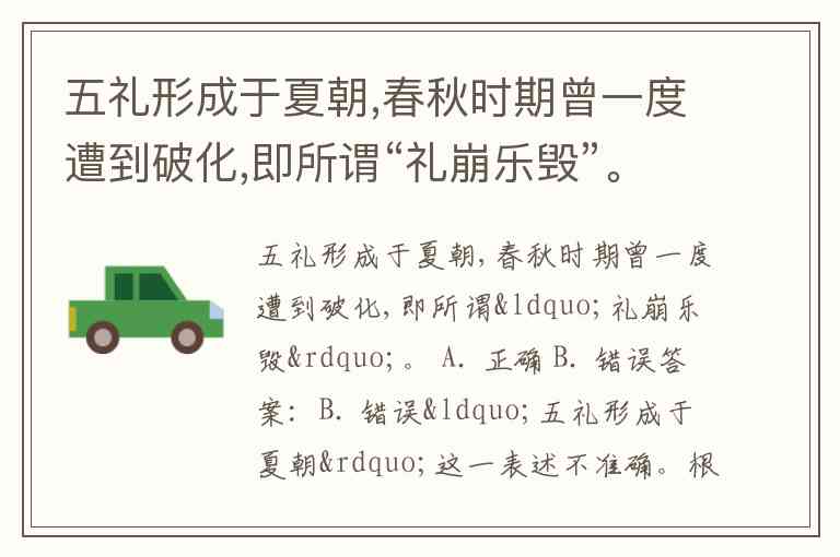 五礼形成于夏朝,春秋时期曾一度遭到破化,即所谓“礼崩乐毁”。 A. 正确 B. 错误