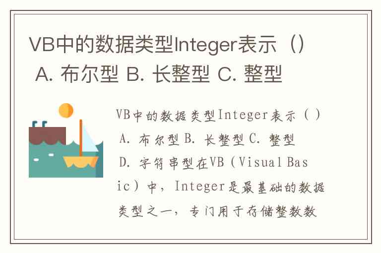 VB中的数据类型Integer表示() A. 布尔型 B. 长整型 C. 整型 D. 字符串型