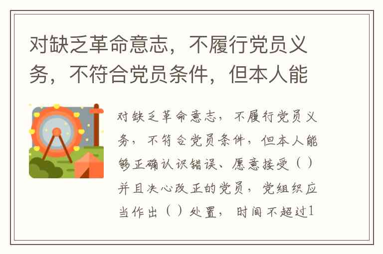 对缺乏革命意志、不履行党员义务、不符合党员条件的党员,若本人能够正确认识错误并决心改正,党组织需依据《中国共产党党员教育管理工作条例》第三十条实施分级处置:首先要求其接受教育管理,随后作出限期改正处置(期限不超过1年),期间同步采取帮助教育措施,如谈心谈话、结对帮教等具体形式。这一机制既体现了党组织"惩前毖后、治病救人"的原则,也为党员改进提供了制度化路径。