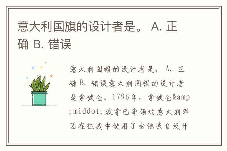 意大利国旗的设计者是。 A. 正确 B. 错误