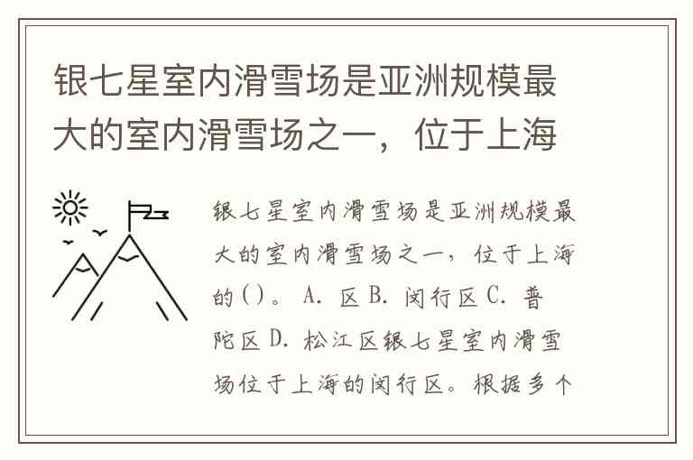 银七星室内滑雪场是亚洲规模最大的室内滑雪场之一,位于上海的( )。 A. 区 B. 闵行区 C. 普陀区 D. 松江区