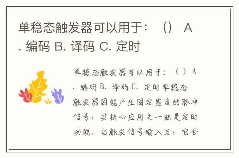 单稳态触发器可以用于:() A. 编码 B. 译码 C. 定时