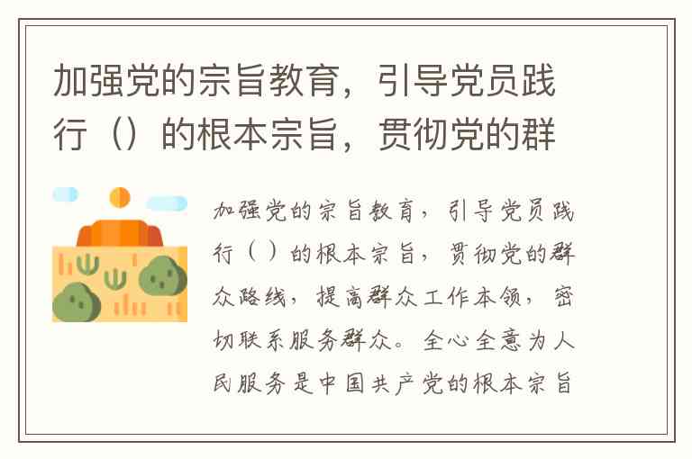 加强党的宗旨教育,引导党员践行()的根本宗旨,贯彻党的群众路线,提高群众工作本领,密切联系服务群众。