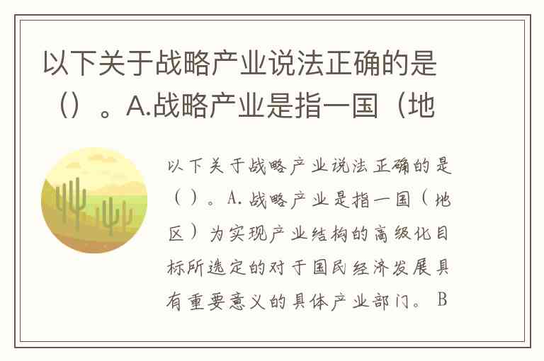 综上,战略产业的定义(A)、相对性(B)及动态可能性(C)均符合其本质特征,而“永恒不变”的表述(如选项D)则与产业生命周期和国家战略调整规律相悖。