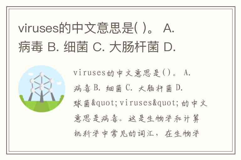 viruses的中文意思是( )。 A. 病毒 B. 细菌 C. 大肠杆菌 D. 球菌